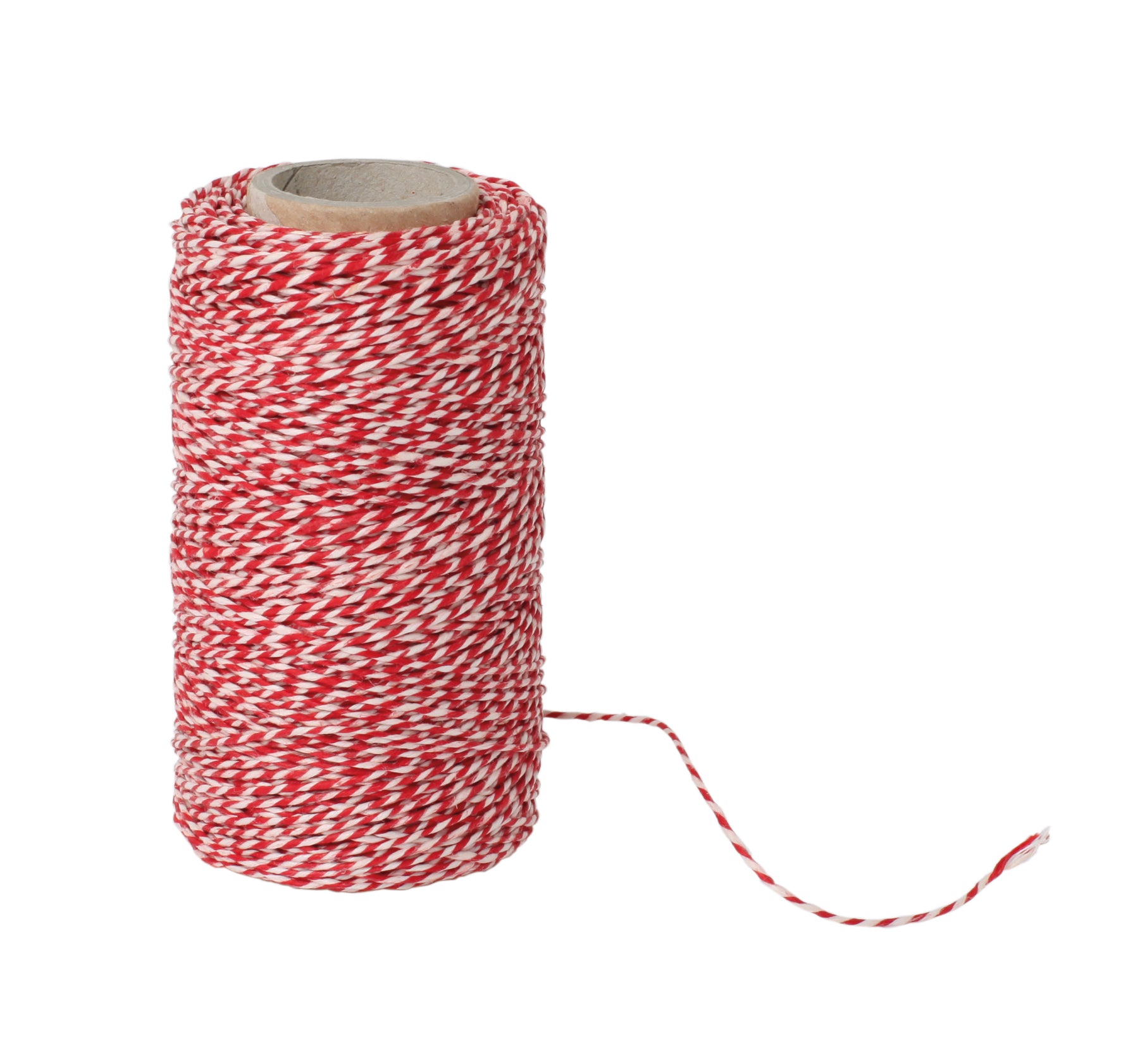Traditional kitchen string made from food-safe, red and white, twisted 100% flax yarn to use in the kitchen for tying up roasts, meats and for other culinary jobs. Also ideal for use in the garden as well as a lovely choice when wrapping parcels and gifts.