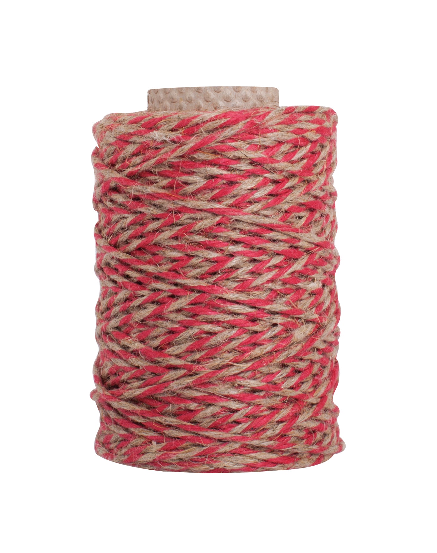 A traditional, red and natural colour twisted flax yarn, or twine, made from 100% flax to use in the kitchen, garden or for other household jobs.