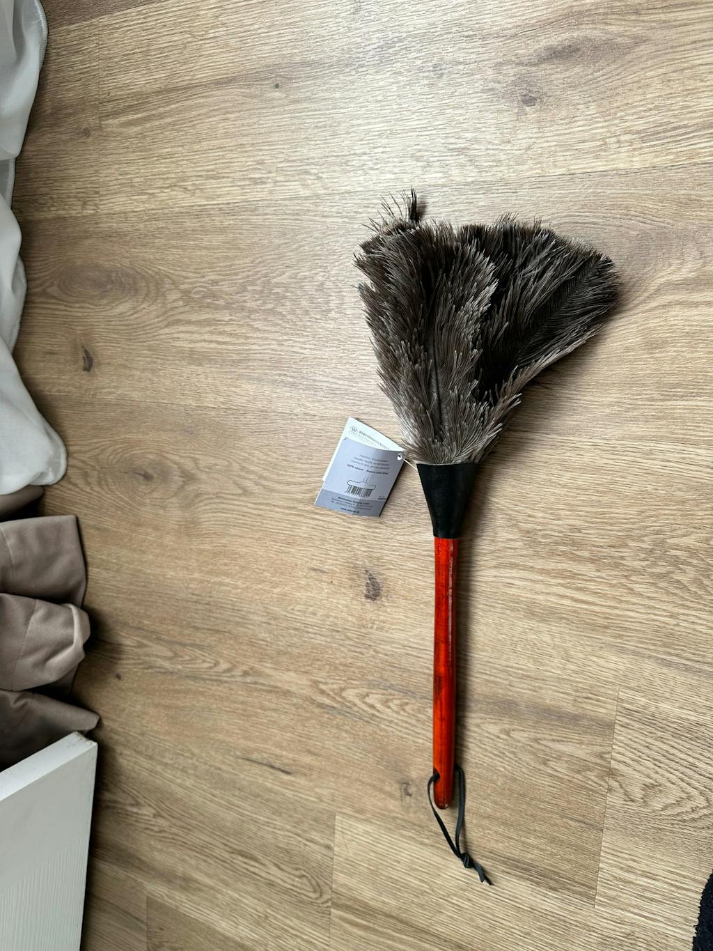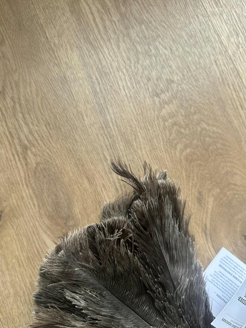 The duster is perfect for my delicate glass ceiling light. Unfortunately the ostrich birdie type smell is horrid and quite powerful. It could even be the glue used but I am sure it will die down after a while. I had it in my pantry and had to remove it because the smell knocked me out every time I opened the door. That said, I would still purchase the duster as it is very well made and very soft and does the job I bought it for perfectly.