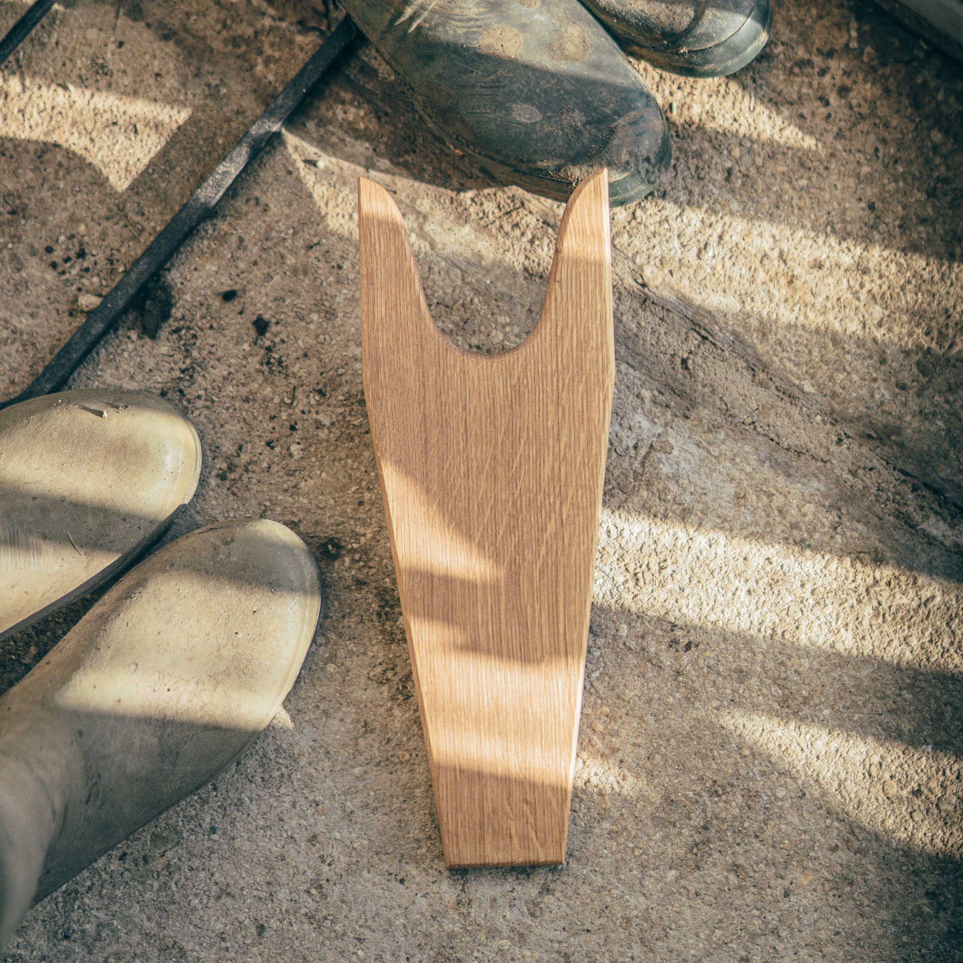 Stunning in its simplicity, our luxury, heirlook quality bootjack is hand crafted from finest, solid, oiled oak. A tried and trusted design which works, use one foot to hold the bootjack whilst inserting your other foot into the slot and then pull - gravity will do the rest and you will be boot-free in seconds! 40cm long.