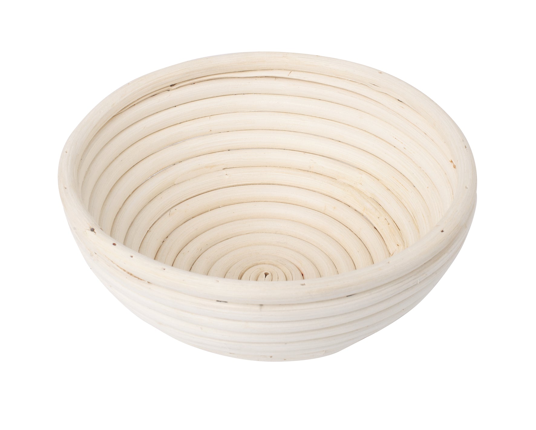 A natural, small, round, rattan reed basket especially designed for proving dough and allowing it to rise in an airy environment. Simply flour the basket interior before use, then brush away residue after the dough has risen and been removed for baking. Suitable for loaves up to 500g, it measures 20.5cm diameter. Also available in large round size and oval basket options, it may be used also for serving freshly baked bread.