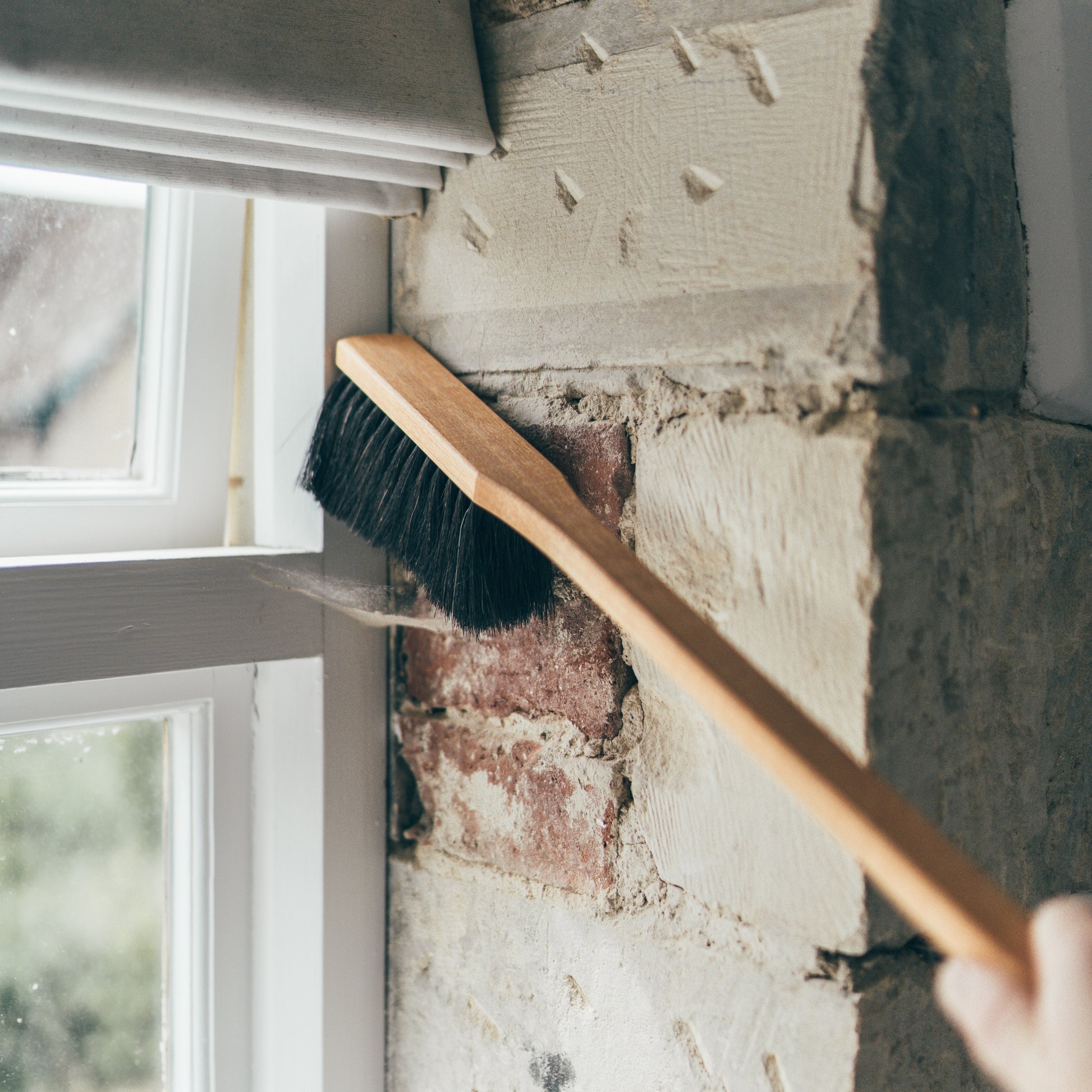 With an extra long, oiled beechwood handle set with soft, black horsehair, this useful hand brush is unusual in that it bears a sufficiently narrow brush head to reach into all manner of nooks and crannies with ease. The 68cm long handle makes reaching up high effortless and safely without the need for steps. It is finished with a leather hanging loop.