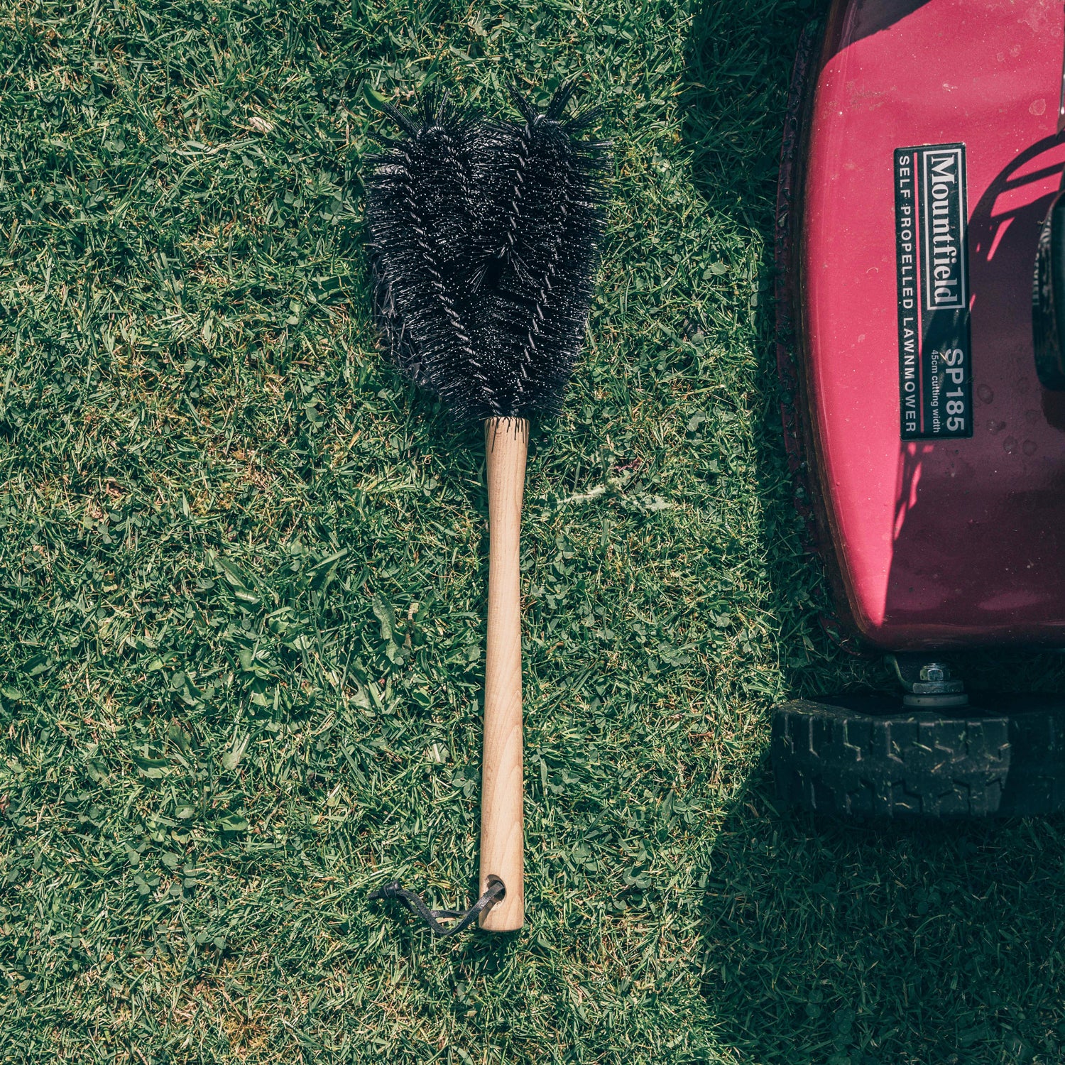 An essential, long handled brush for gardeners and those who spend the summer months busy mowing and tending to their lawns, our lawnmower brush will remove grass cuttings and debris from your mower with ease, helping to preserve the life and performance of your mower with each apres-mow clean! Made from oiled beechwood set with extra stiff, black, nylon bristles on a strong wire frame. 44cm long to easily reach into the mower.