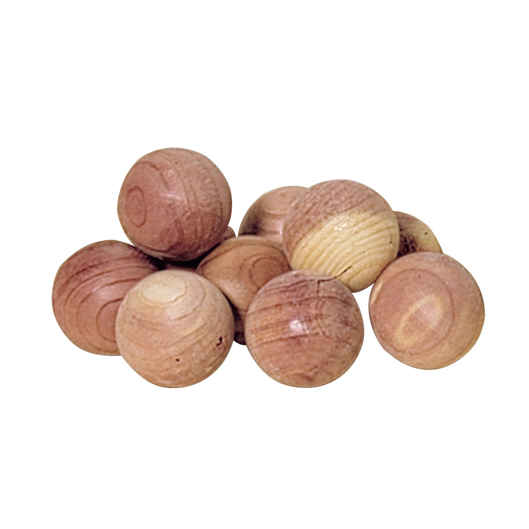 Natural, untreated cedar wood balls in a pack of 10 for moth prevention in drawers and cupboards. Eco and environmentally friendly, our red cedar collection provides an excellent, fragrant moth repelling solution for the home. When the fragrance fades, refresh them with our pure, red cedar oil, sold separately. Each ball measures 2.5cm diameter.