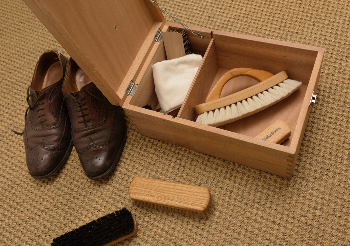 Shoe Cleaning Valet Box With Footrest Beechwood