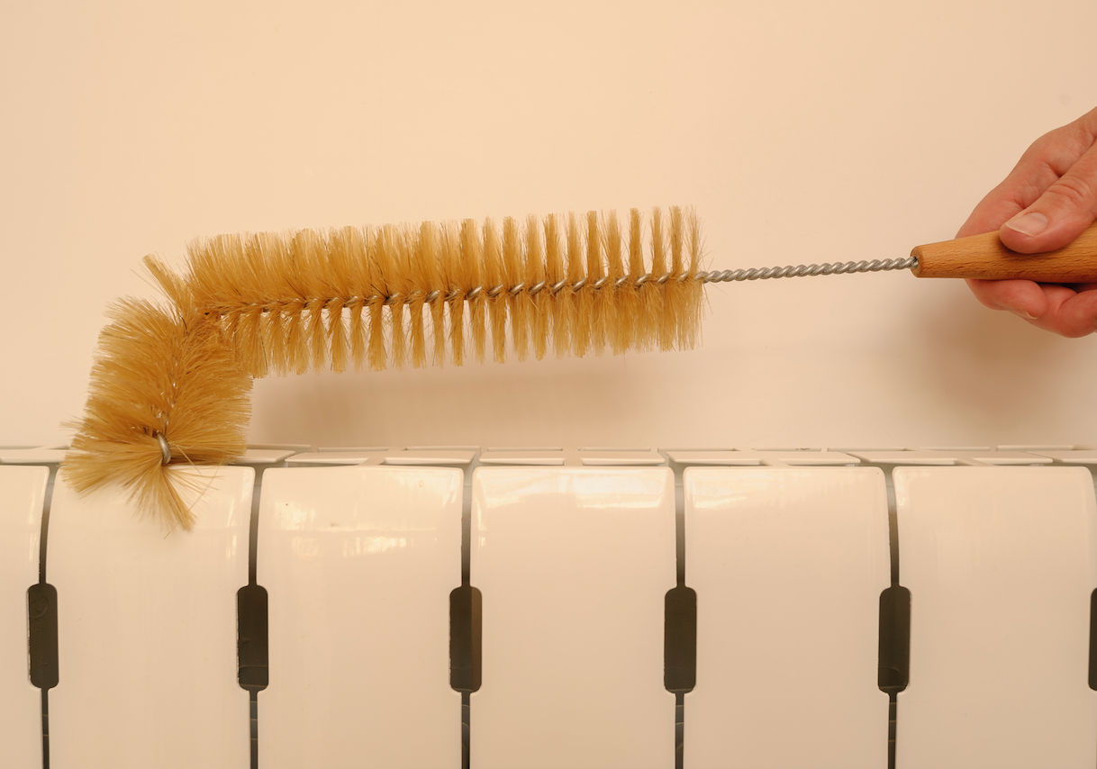 Firmer than our soft goat hair radiator brushes, this light boar bristle blend brush with curved head and oiled beechwood flat handle to reach and clean between rails and columns of slatted radiators and towel rails. The bristle heads are secured with twisted wire and are in parallel formation to work each side of the rails or slats and measure 6cm diameter each. Overall length 42cm and finished with a leather hanging loop.