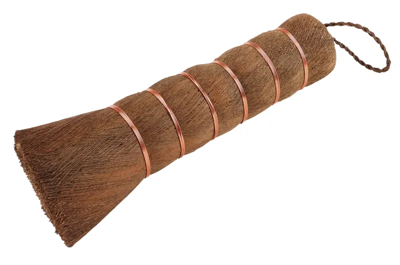 The firm but fine palm fibres of this brush clean pots, pans and woks without scratching them. If the lower part becomes too dirty or worn, you can easily trim the brush. The brush can be continuously used by removing the lowest copper wire. Made from the palm fibres of Trachycarpus fortunei, and bound with copper wire. Measures 18.5cm