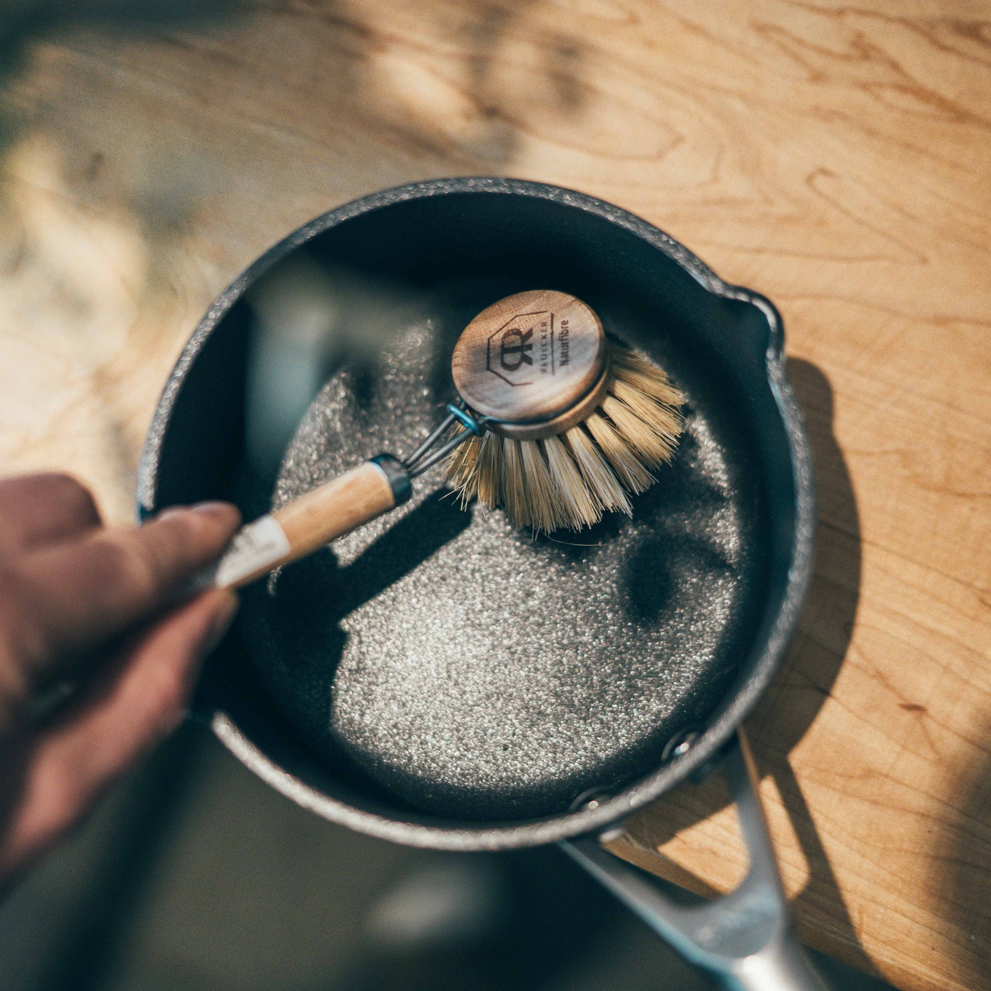 Nothing beats a traditional dish washing brush made from untreated beechwood and tough tampico fibre, finished with a metal hook for hanging when not at work in the kitchen sink. Ideal for use on your best crockery, glassware and cutlery, it cleans gently but effectively and replacement head are available when required. Also available in 5cm diameter size.