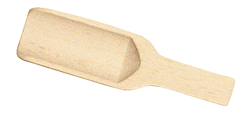 A long, shallow wooden shovel or scoop, specially designed to use with spices.